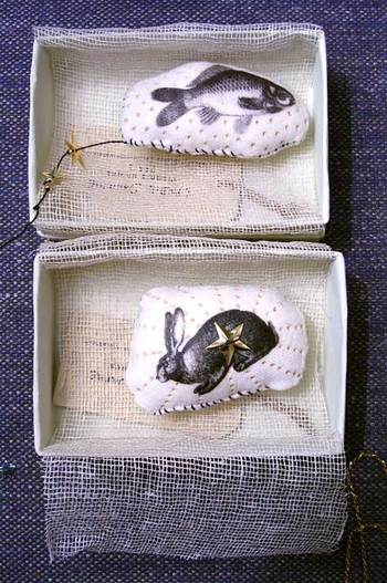 She treats her subjects as a scientist or curator might, cataloging and classifying them in little treasure boxes:
