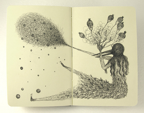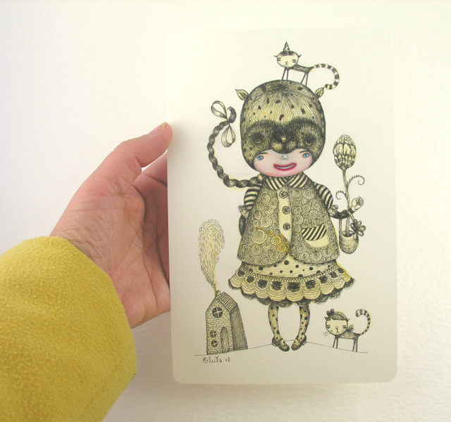 I started off 2009 with a post about Three Graces Gallery that included the work of Elsa Mora, a multi-talented artist from Cuba. She is among other things a fantastical illustrator. Prints of her work above can be found in her Etsy shop.