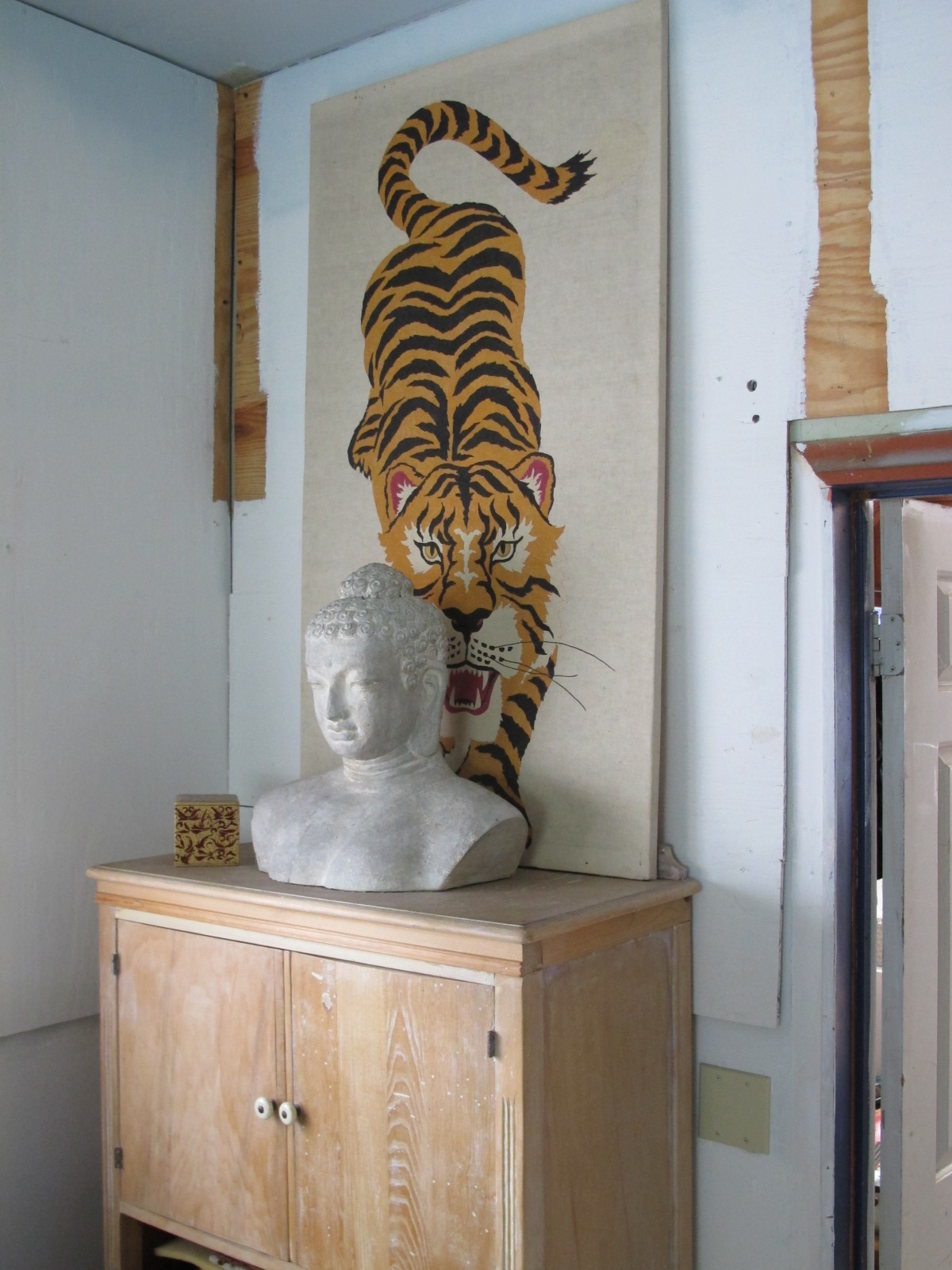 and a corner of the living room in progress…